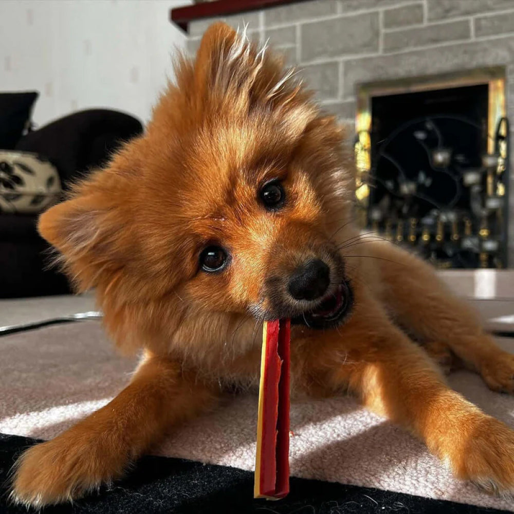 由 100% 天然、純素、無穀物成分製成,呢款小食係比傳統骨頭形零食更健康嘅選擇。獨特嘅煙燻味令狗狗食到停唔到口,而厚實嘅質感就好似美味牙刷一樣,幫助保持清新口氣同健康牙齒。