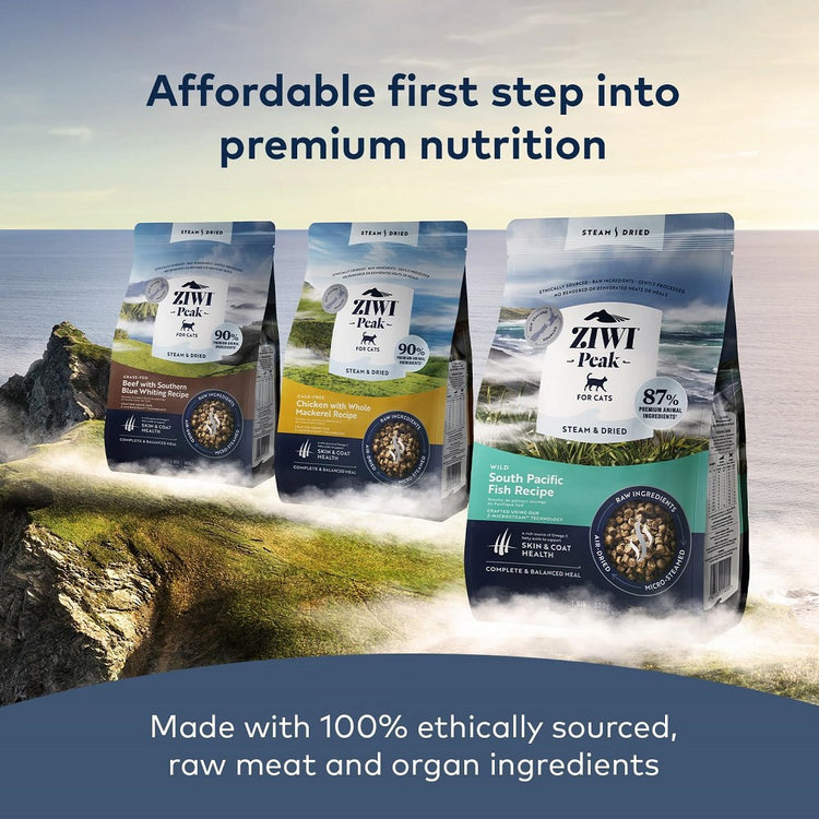 Combining the nutrition of a raw diet with the convenience of ready-serve dry food, ZIWI Peak's award-winning gently air-dried pet foods are handcrafted in small batches to ensure the highest quality, and are loaded with ethical and sustainable raw meats from New Zealand to meet the biological needs of your cat or dog.